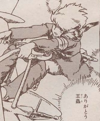 半ば冗談ではあろうが、秘石に近い人間であるナウシカを「置いていく」という発言が出る時点で、彼が既に秘石には執着していない事、つまり完全にクシャナに鞍替えした事を示している。